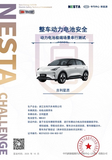 《中汽中心高可靠电驱认证》 《行业首次84333公里车辆电池