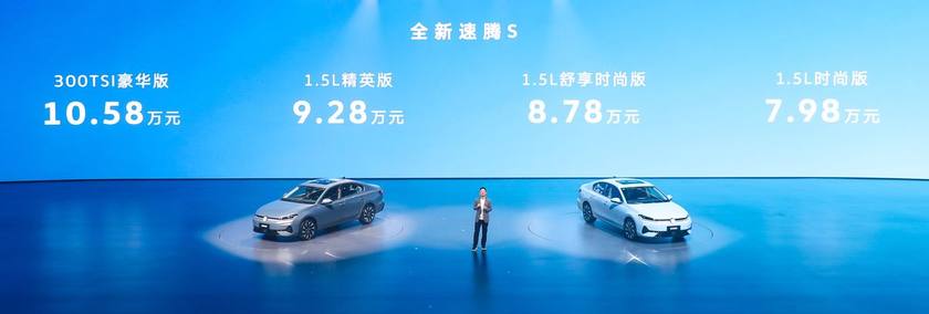 3月31日,全新速腾S于一汽-大众春季新品发布会重磅上市,新车共推出1.5L时尚版、1.5L舒享时尚版、1.5L精英版和300TSI豪华版四款配置,价格为7.98万元—10.58万元。